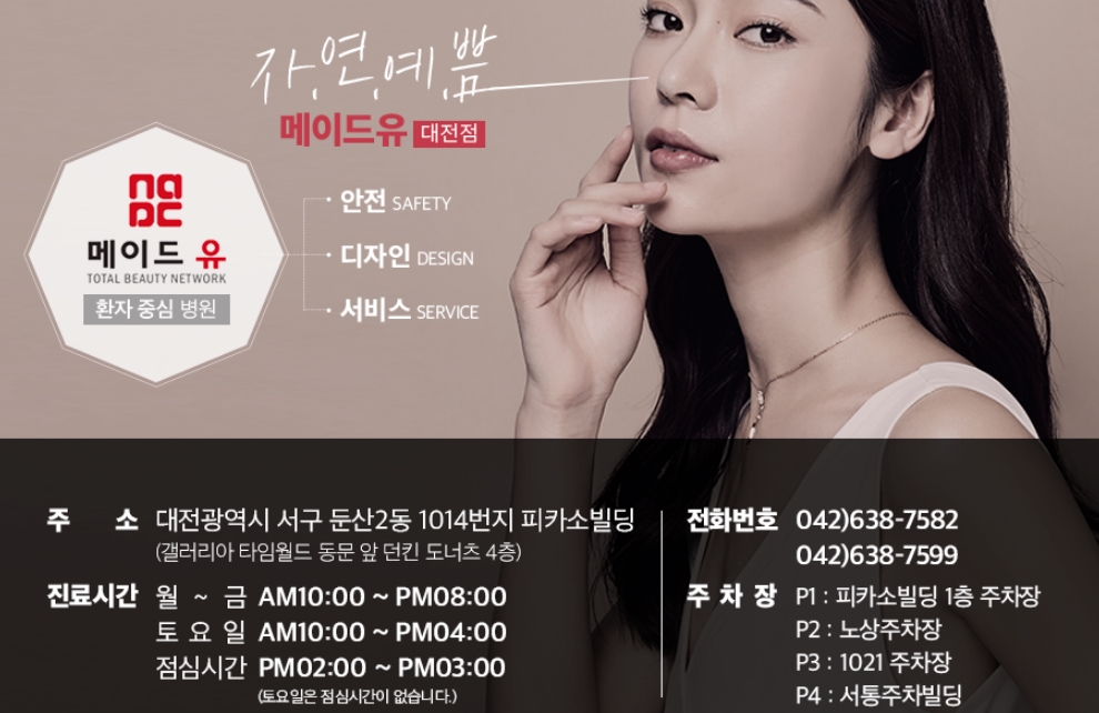 대전둔산동피부과 메이드유의원은 최신 기술과 전문성을 바탕으로 고객의 피부 건강을 책임지는 곳입니다. 여름철 피부 관리부터 노화 방지까지, 다양한 피부 고민을 해결할 수 있는 최적의 파트너가 되어 드리겠습니다. 지금 메이드유의원 대전을 방문해 피부의 변화를 경험해 보세요!