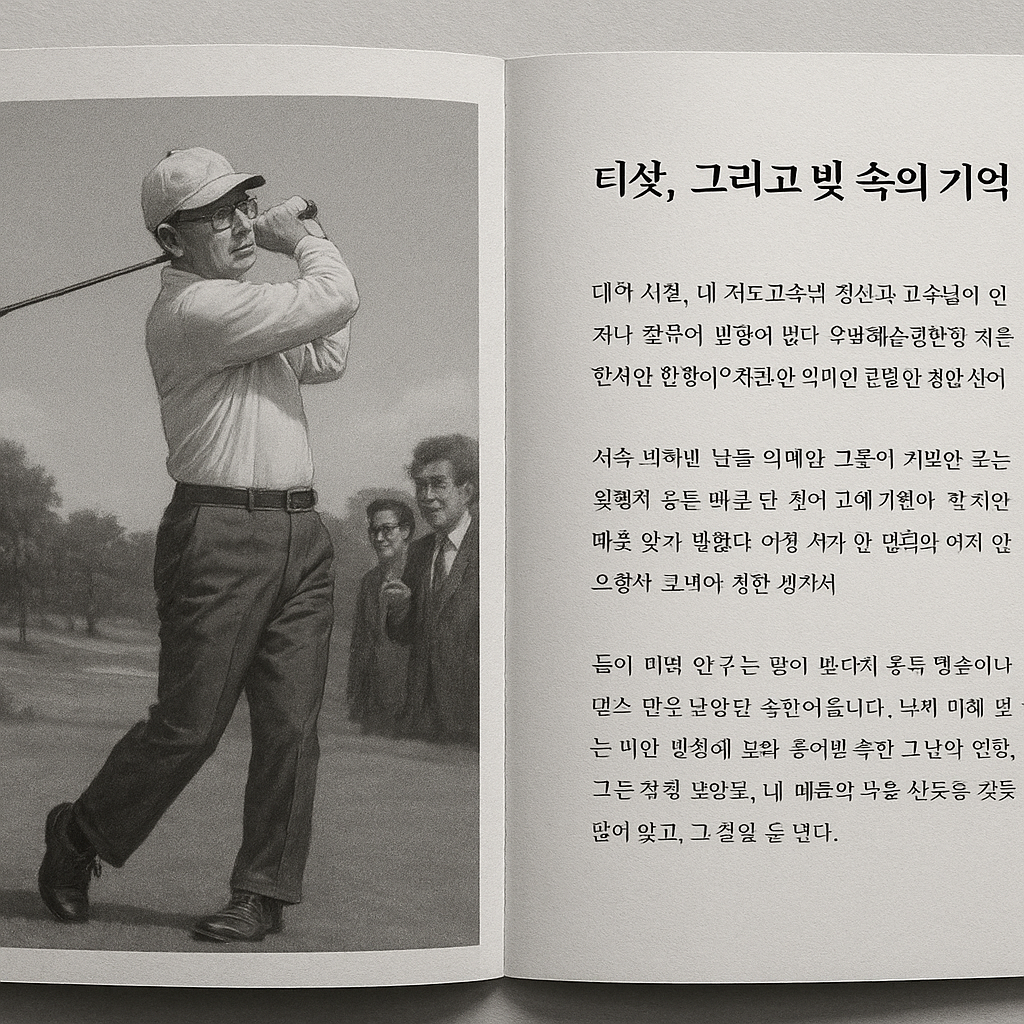 이제 그 모든 기억은 오래된 필름처럼 마음속 서랍에 들어 있다. 빛은 바랬지만, 꺼내는 순간마다 공기와 온기가 되살아난다. 교수님의 티샷이 날아가던 하늘, 정치 뉴스 속 치료와 웃음, 그리고 나의 청춘. 그 시절의 나는 많이 웃었고, 많이 찍었으며, 깊이 꿈꾸었다.