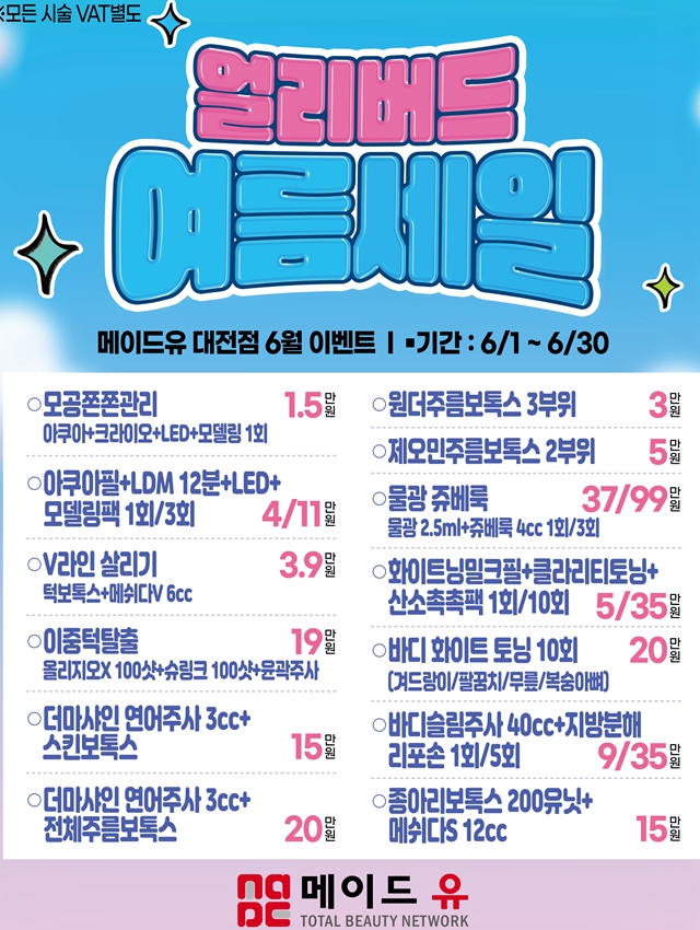 메이드유의원 대전점에서는 6월 한 달간 특별한 혜택을 담은 얼리버드 여름 세일 이벤트를 진행합니다.